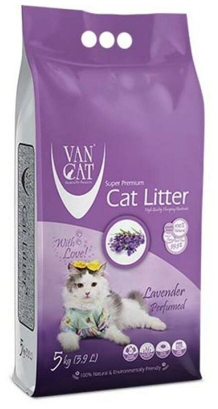 Наполнитель для кошачьего туалета Van Cat Lavender с ароматом лаванды 5кг