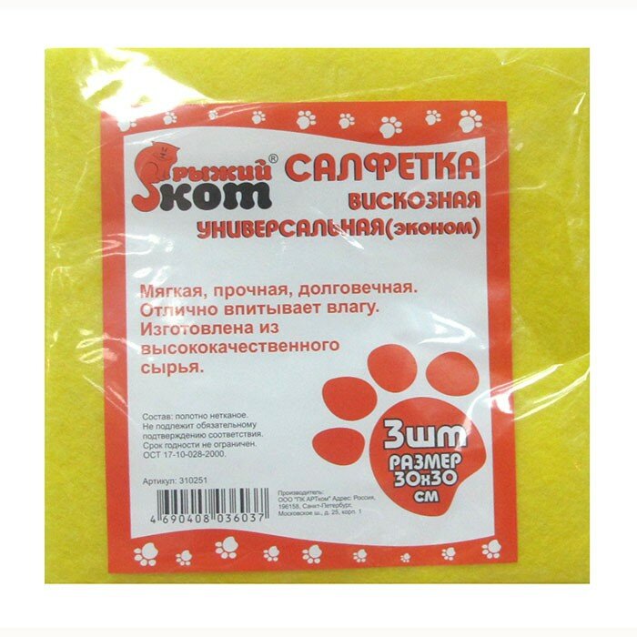 Салфетка Рыжий кот Универсальная 30*30 3шт