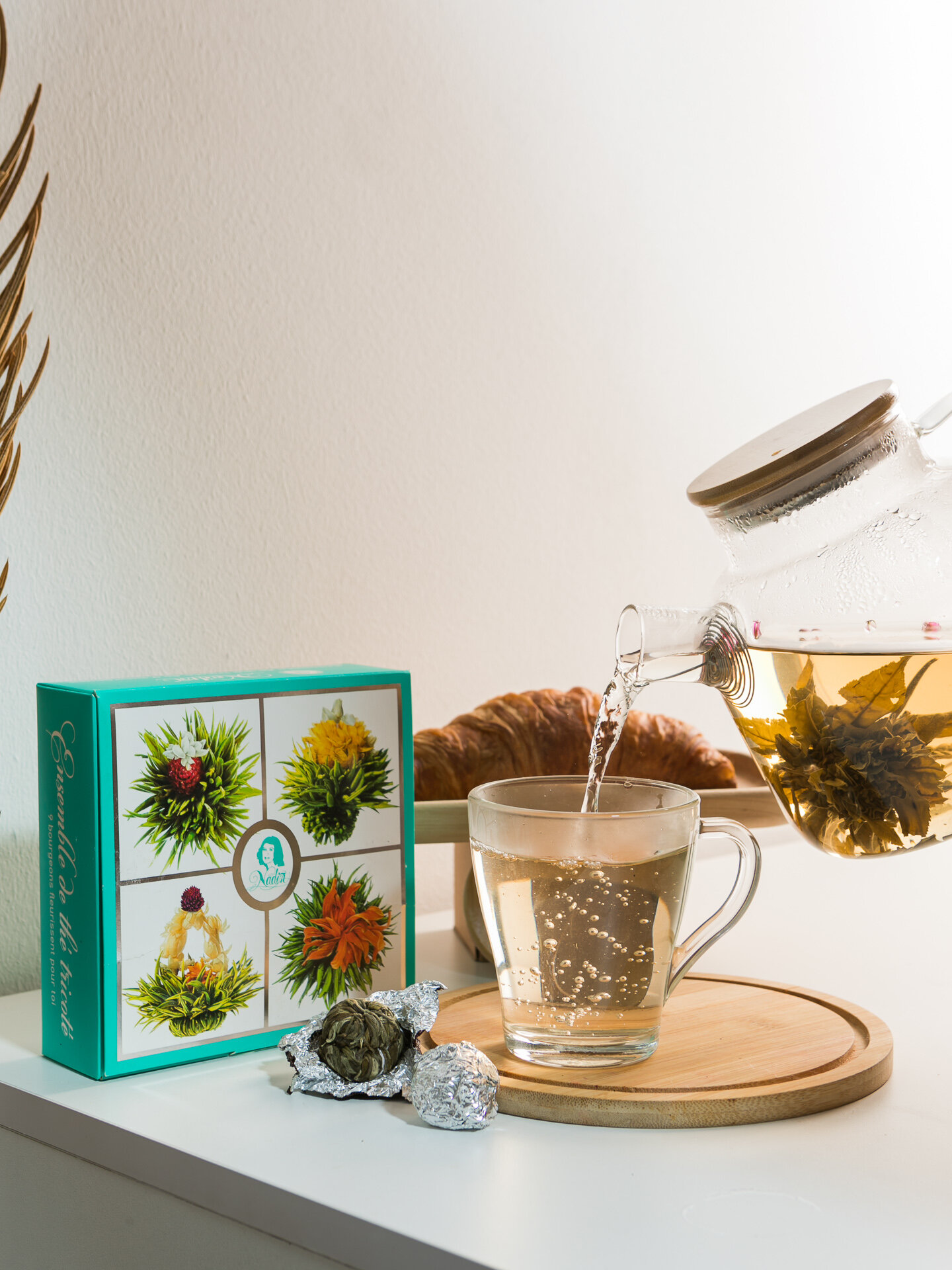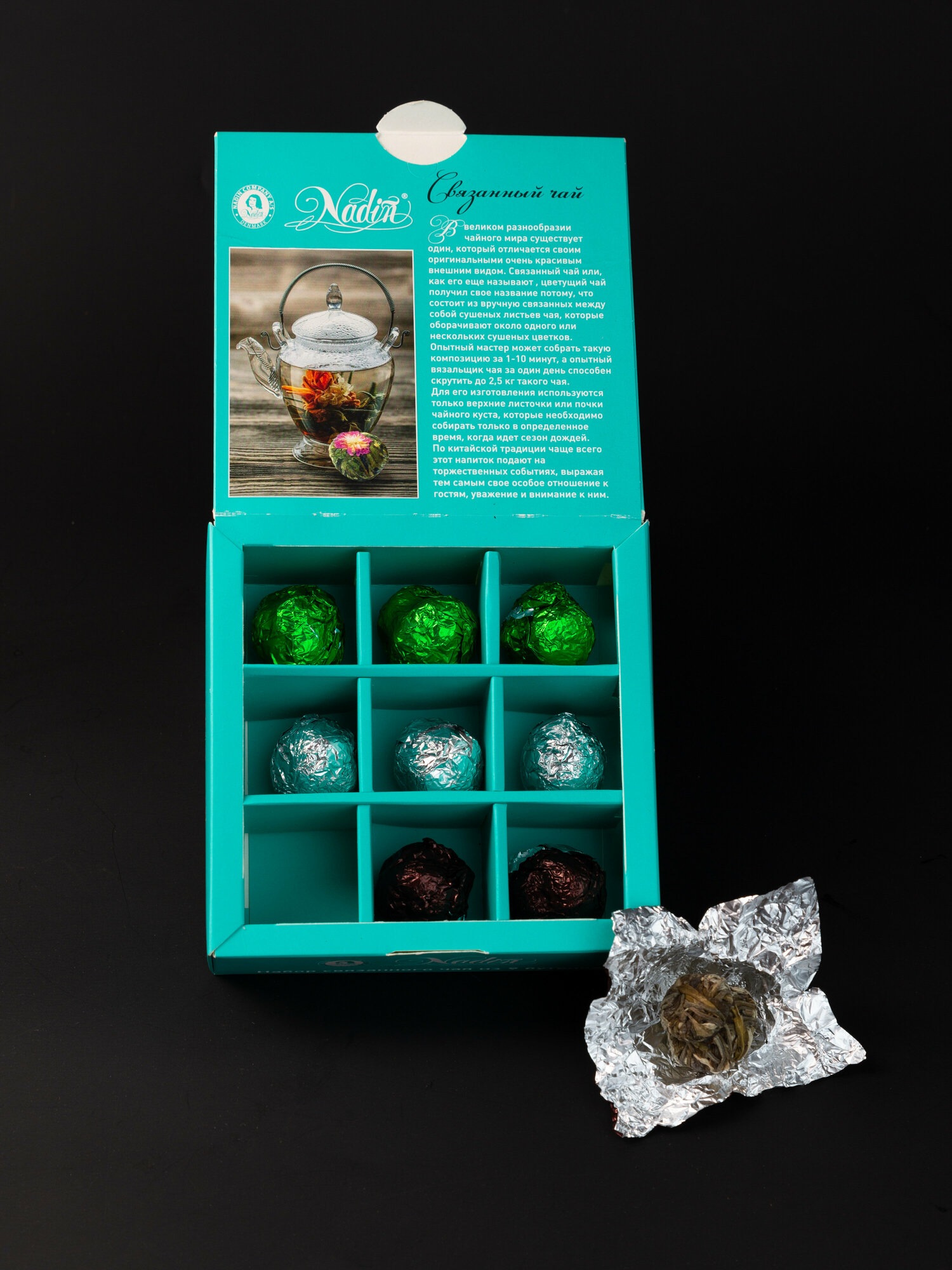 Добро пожаловать в мир волшебства и изысканности! Наш подарочный набор чая - это уникальное собрание ароматов и вкусов, созданных для того, чтобы дарить радость и наслаждение. Каждая чашка нашего чая - это путешествие в мир богатства природы. Связанный чай nadin - это "бутон" из листьев зеленого чая, внутри которого находятся ароматные цветы. Связанный или цветущий, цветочный чай - это пучок высушенных листочков чая, которые бережно оборачивают вокруг одного или нескольких сухих цветков, раскрывающихся в эффектную композицию при заваривании. В заварник достаточно положить один бутон. Шар раскрывается, распускается в горячей воде. Отличительная особенность не только во вкусе и упоительном аромате, но и в завораживающем зрелище. Связанный чай - это настоящее произведение искусства, созданное опытными мастерами, которые знают, как раскрыть все нюансы лучших сортов чая. В нашем наборе вы найдете уникальное сочетание зеленого и черного чая, связанных в нежные мягкие узлы, которые при заваривании раскроют свою ароматическую сущность. Это богатый, насыщенный напиток, который обладает ярким ароматом и восхитительным вкусом. Он богат витаминами С и К, а также фолатами, калием и диетическими волокнами. Компоненты снижают риск различных заболеваний, в том числе болезней сердца, инсульта, рака и диабета. Чай надин - это знакомый всем продукт, который производится путем окисления листьев чайного куста. Он содержит катехины и кофеин, которые вместе с другими природными соединениями обладают множеством полезных свойств для здоровья. Комбинация чая создает уникальный и прекрасный вкус напитка. В этом чае сочетаются горькие и сладкие ноты, которые создают гармоничное сочетание. Чай имеет яркий аромат и насыщенный вкус. Чай можно употреблять как горячим, так и холодным. Он имеет деликатный аромат, что делает его идеальным выбором для утреннего завтрака или какого-либо другого времени дня. Этот чай также хорошо сочетается с многими продуктами, такими как взбитые сливки, сыр, орехи, фрукты и десерты. Чай предлагает множество преимуществ. Он поддерживает здоровье организма благодаря своим полезным свойствам, придает чувство комфорта и расслабленности, поэтому этот напиток - отличный выбор в любое время. Чай ассорти включает разнообразие вкусов и ароматов, начиная от освежающего зеленого чая, до насыщенного черного чая. Каждый глоток станет настоящим открытием, приглашая вас на путешествие через бескрайние чайные плантации мира. Подарочный чай - это не просто набор чая, это возможность подарить незабываемые моменты удовольствия и радости. Наш набор - идеальный выбор для тех, кто ценит качество. Он станет прекрасным подарком для близких и друзей, позволяя им насладиться красотой и вкусом связанного чая. Мы заботимся о каждой детали, чтобы ваш опыт с нашим Подарочным Набором был поистине незабываемым. Подарите себе и своим близким уникальное путешествие в мир чайных вкусов и ароматов. Откройте двери в волшебный мир чая с нашим набором прямо сейчас!