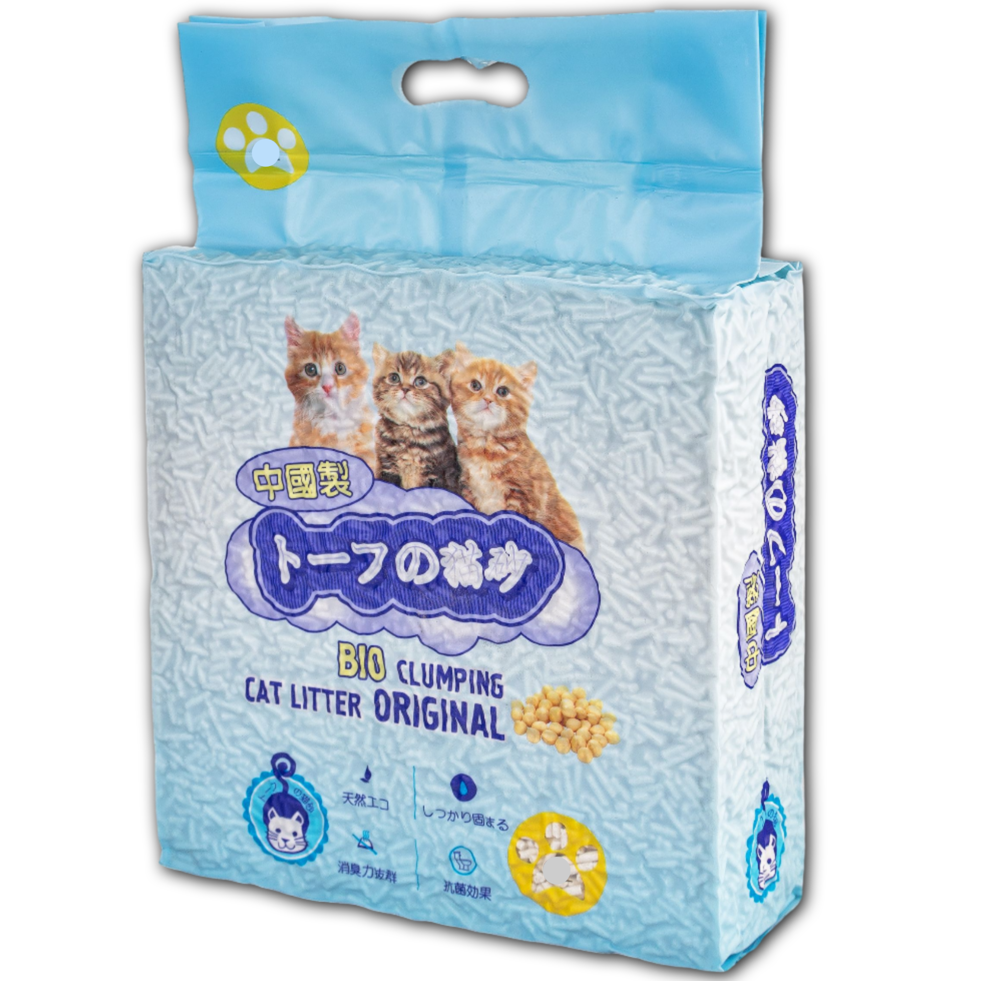 Комкующийся наполнитель для кошачьего туалета. Тофу - спресованная масса из соевых волокон, которые впитывают большое количество влаги. Волоконная структура обеспечивает качественное соединение гранул, образуя комок и блокируя запах внутри, а натуральные отдушки придают мягкий аромат. Использованный наполнитель можно выбрасывать в унитаз.