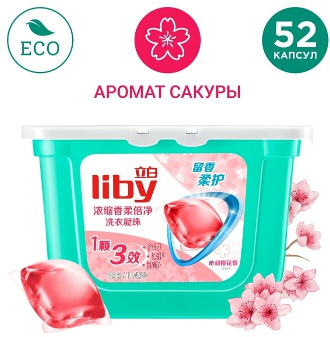 Капсулы для стирки Liby Аромат сакуры 52шт