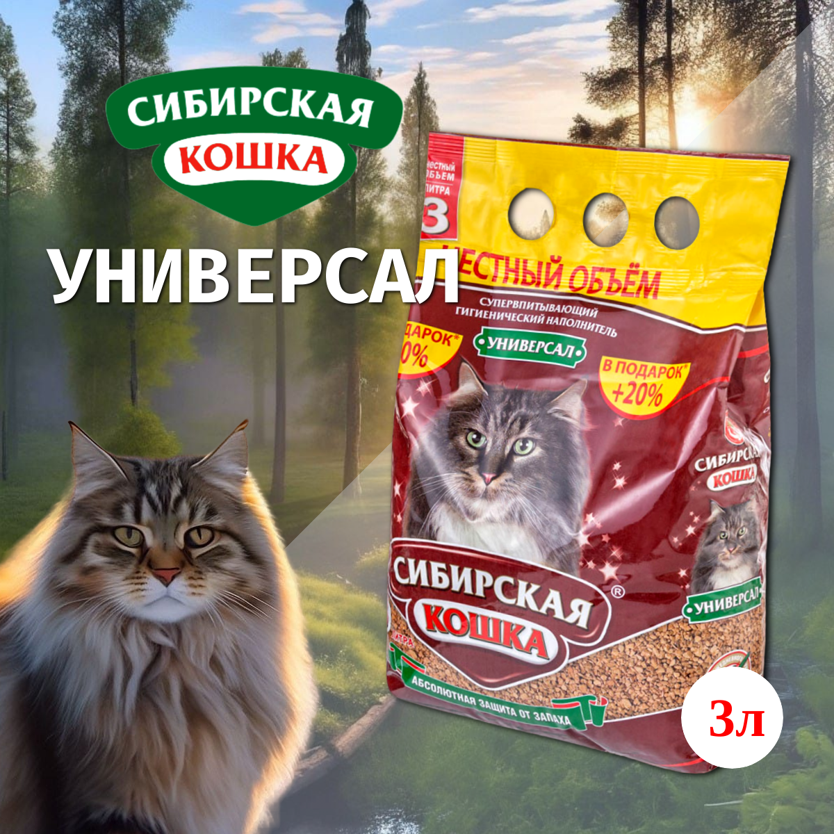 Наполнитель для кошачьего туалета Сибирская кошка Универсал впитывающий 4.8л