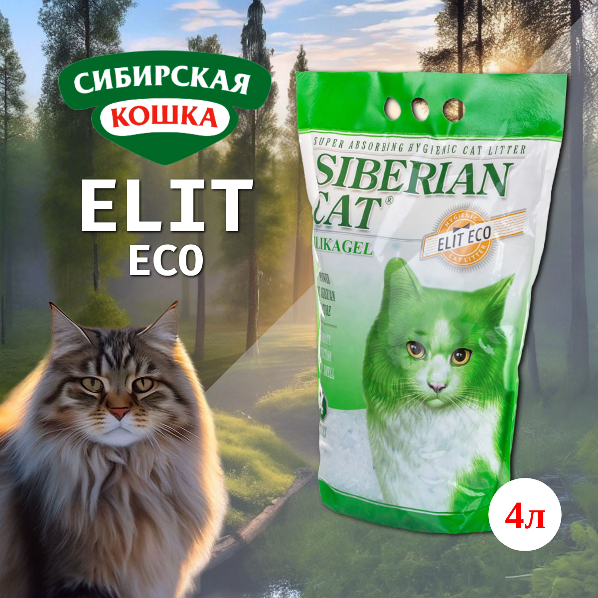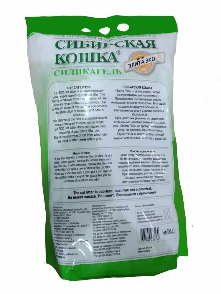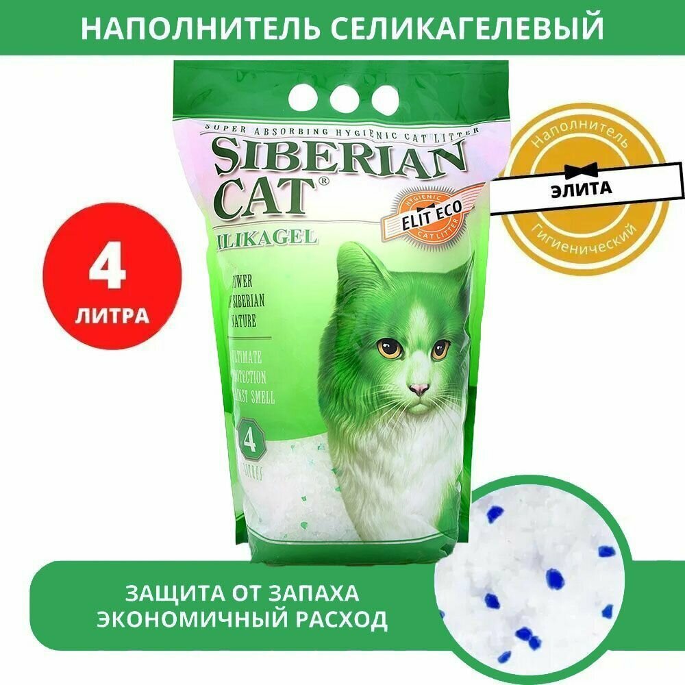 Наполнитель для кошачьего туалета Сибирская кошка Элита ЭКО силикагель 4л