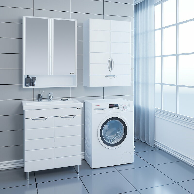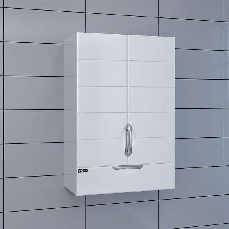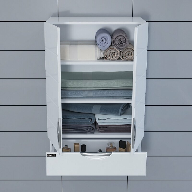Подвесной шкаф СанТа Родос 60 406003 с одним ящиком. В ванной комнате крепится над стиральной машиной.