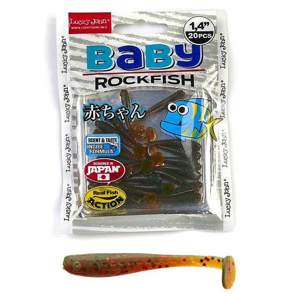 Lucky John Baby Rockfish 35 мм - приманка-универсал, подходящая для ловли в пресных водоемах и для морской рыбалки в стиле “рокфиш”. Миниатюрный виброхвост имеет отрицательную плавучесть. Он хорошо подойдет для микроджиговой ловли.