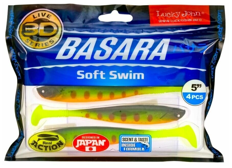 Приманка Lucky John 3D Series Basara Soft Swim Pg01 виброхвост наб.:4шт (140404-PG01)