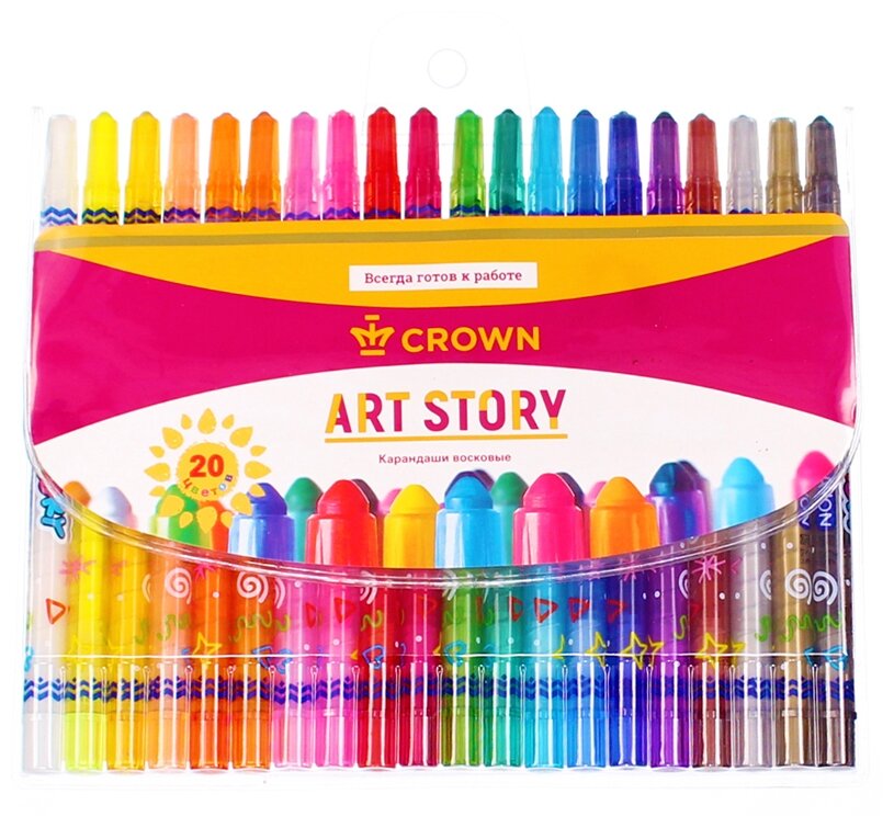 Карандаши восковые Crown ArtStory 20 цветов выкручивающийся стержень 290г Карандаши восковые 20 цветов выкручивающийся стержень