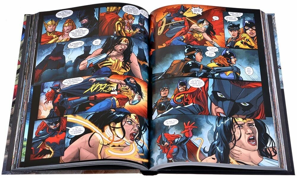 Окончательно утвердился в мысли о том, что Injustice очень легкое, ненавязчивое и одновременно с тем увлекательное чтиво. Настолько легко не читается ни один графический роман. По поводу издания… безумно рад, что азбука не забросила серию на третьем году. Да теперь формат делюкс, сдвоенных томов, но какая разница если все пять лет будут стоять на полке? Как и прочие издания, книга выдерживает общую стилистику injustice, так что все выглядит очень лаконично и здорово.