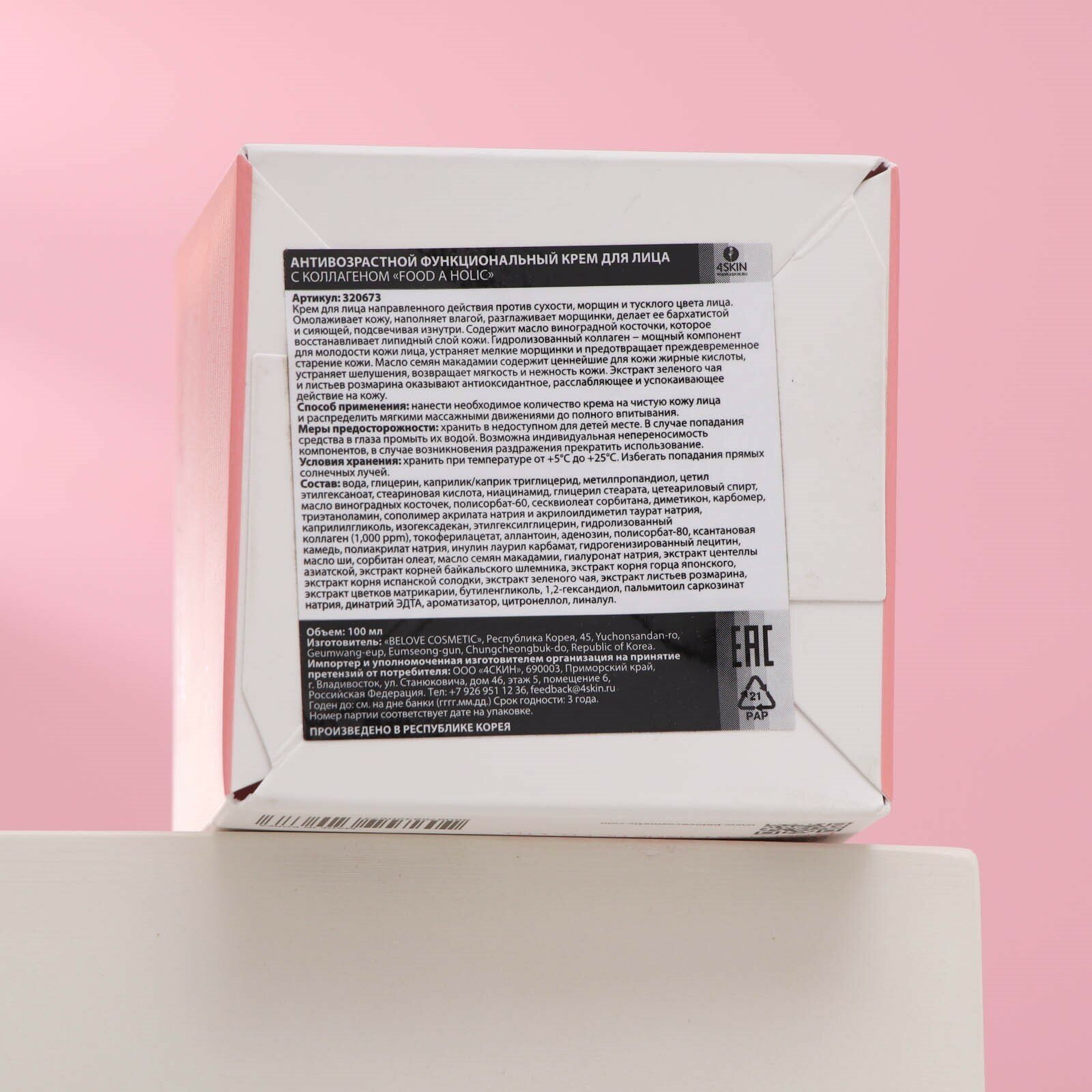 Крем для лица антивозрастной функциональный с коллагеном Food a Holic/Фуд э Холик 100мл Belove Co Ltd (1516408)
