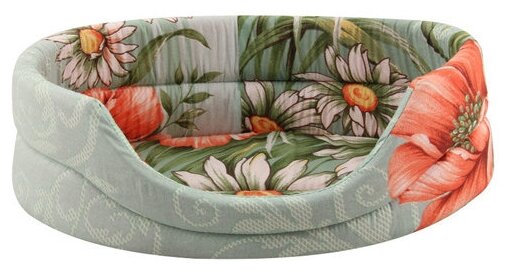 Мягкая лежанка овальной формы с бортом средней высоты. Удобная и аккуратная лежанка набита поролоном, поддерживающим ее постоянную форму.