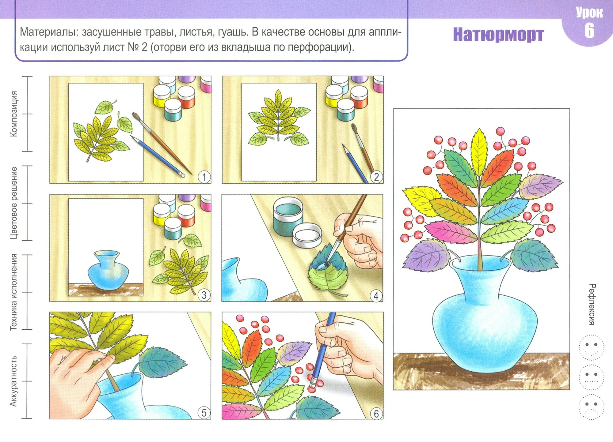 В издание включены практические задания для творческой деятельности в области живописи, графики, лепки, бумажной пластики; образцы педагогических рисунков, последовательности и схемы; шкала самооценки, используемая при безотметочном обучении. Предложенные задания направлены на развитие художественно-образного мышления. Они помогут преодолеть боязнь чистого листа и научат применять выразительные возможности красок, пластилина, бумаги и др.
