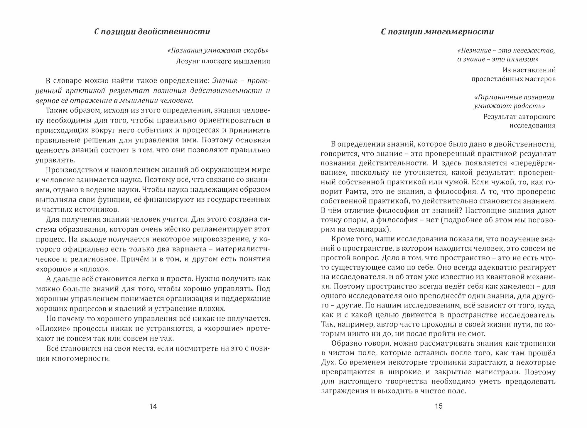 Чтобы ответить на все эти вопросы, автор предлагает многомерно посмотреть на все те процессы, которые происходят с человеком, и увидеть, как "плоское" восприятие бытия, которое представлено в официальных системах воспитания и образования, а также в обычной художественной, "научной" и эзотерической литературе и порождает все эти страхи и конфликты.