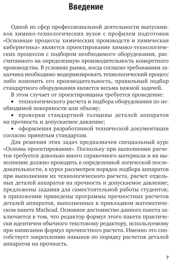 В курсе приведены сведения, необходимые для решения основных задач, возникающих при проектировании химических установок: основные термины, понятия и стадии проектирования; требования стандарта проектной документации; кодировка химических установок по классификатору ЕСКД; основные материалы, используемые для изготовления химических аппаратов, методы технологического расчета и расчета отдельных деталей аппаратов на прочность. Для закрепления материала предложены примеры прочностного расчета деталей аппаратов, выполненные в пакете математических расчетов Mathcad. Содержание курса соответствует актуальным требованиям федерального государственного образовательного стандарта высшего образования. Для студентов высших учебных заведений, обучающихся по инженерно-техническим направлениям.