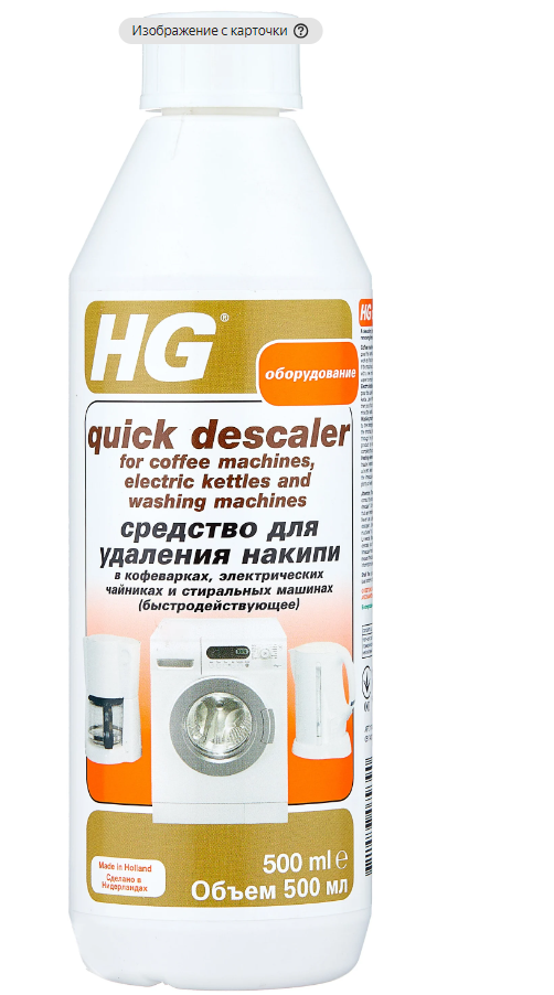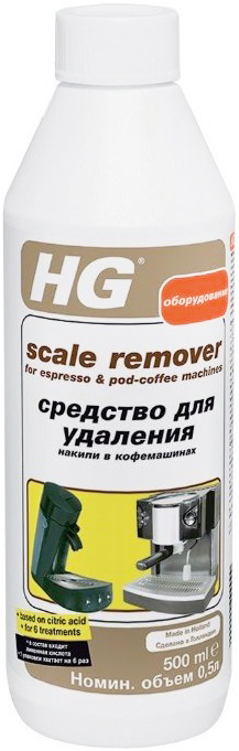 Средство HG для удаления накипи предназначено для удаления известковой накипи с водонагревательных элементов кофеварок, чайников, утюгов, посудомоечных и стиральных машин. Продукт очень быстро действует благодаря своему составу и идеально справляется с накипью. Биологически безопасен. Не оставляет запаха. Регулярное применение средства экономит энергию и продлевает жизнь электрических приборов.