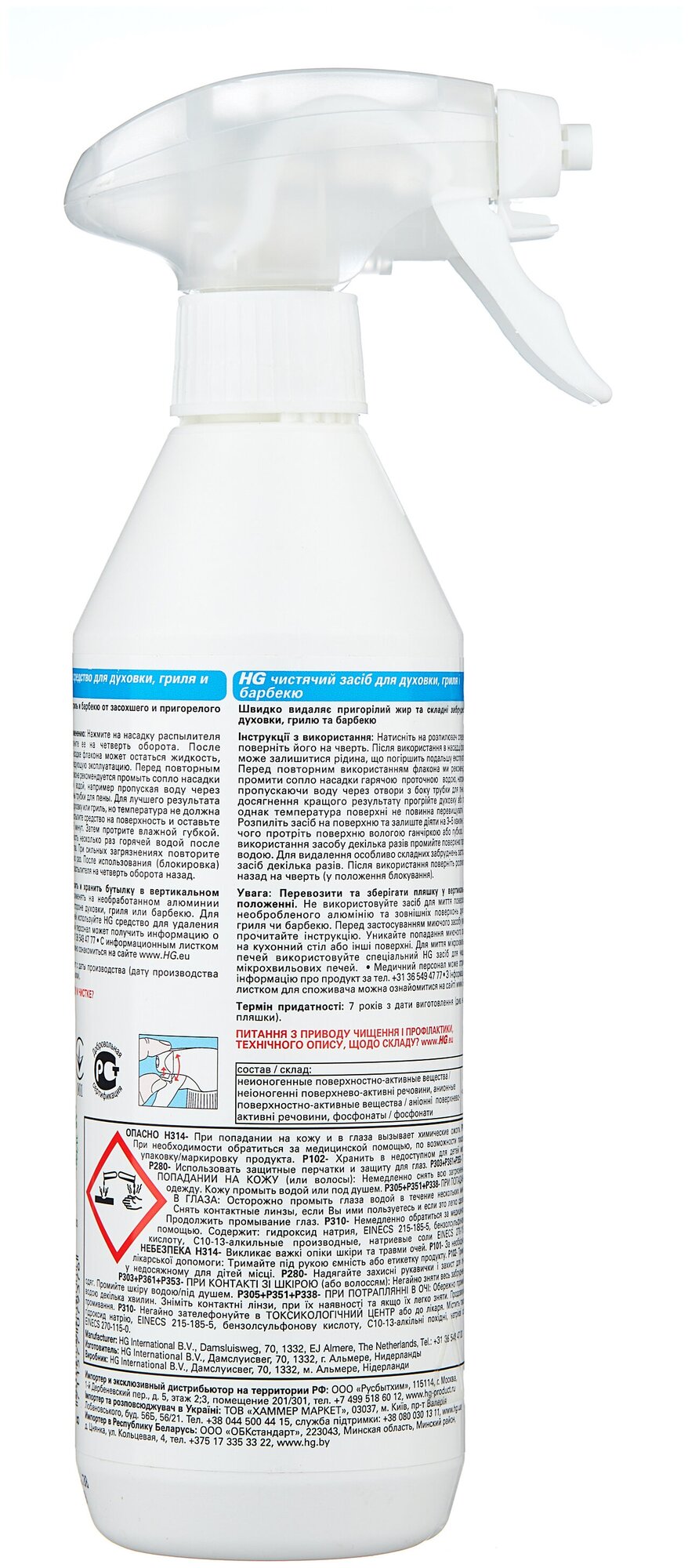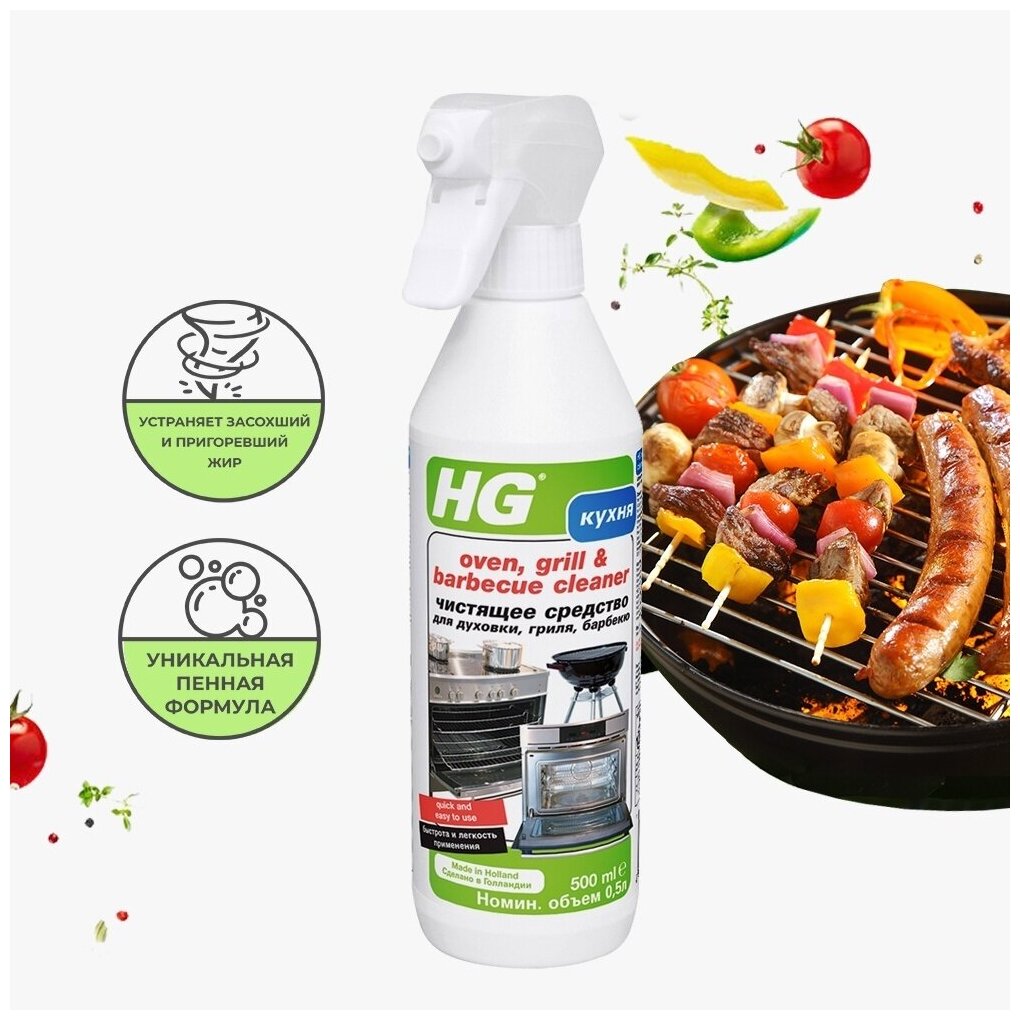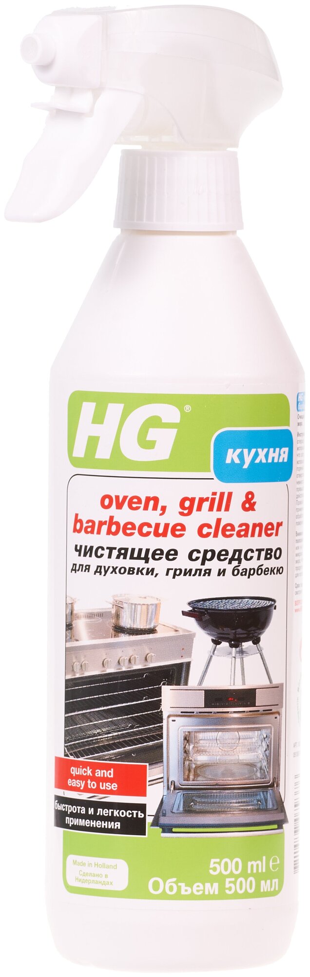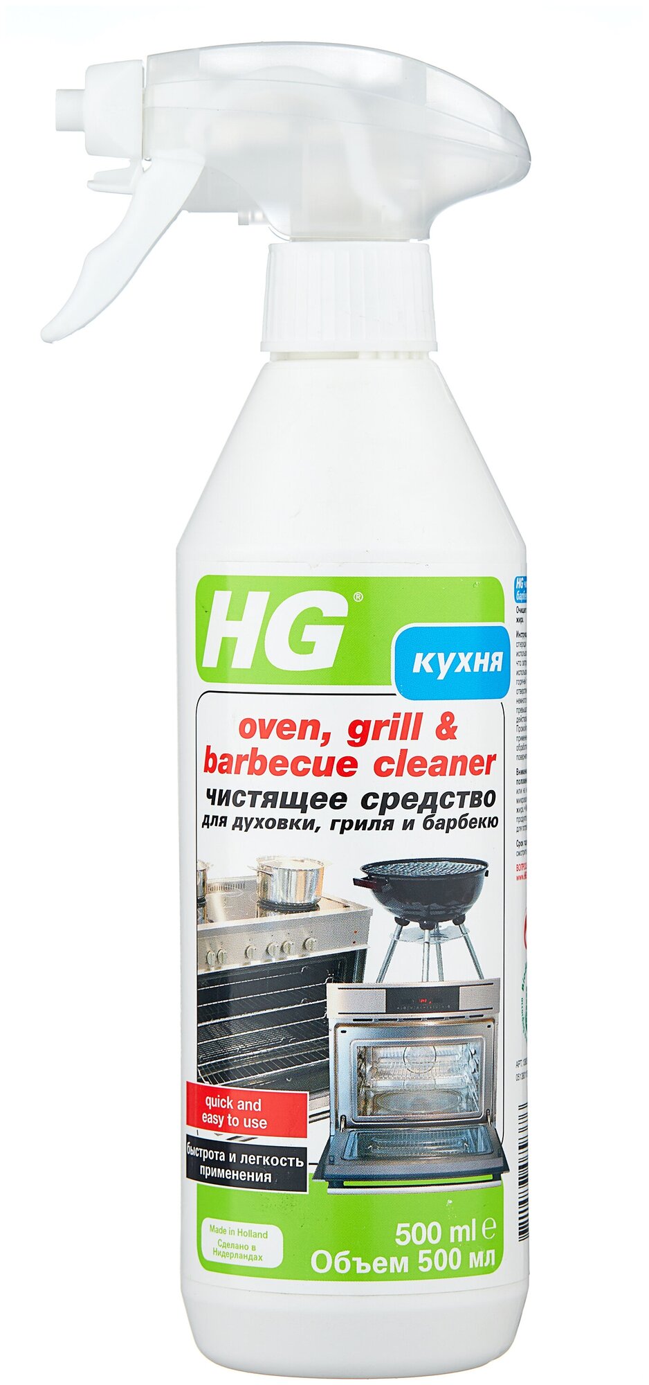 Чистящее средство для духовки, гриля, барбекю HG . Объем 0,5л. Средство имеет распылитель. Уникальная пенная формула позволяет быстро устранить даже засохший и пригоревший жир.