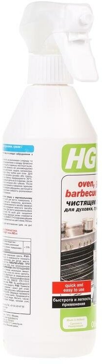 Чистящее средство HG для духовки, гриля, барбекю, предназначено для удаления засохшего и пригорелого жира, масляных пятен, застарелых загрязнений с внутренних поверхностей духовки, гриля, барбекю. Не надо прикладывать никаких усилий. Средство в виде спрея удобно в применении. Необходимо всего лишь нанести его на обрабатываемую поверхность и оставить действовать на несколько минут. Обильная пена на глазах впитает в себя всю грязь, которую необходимо лишь удалить влажной губкой.