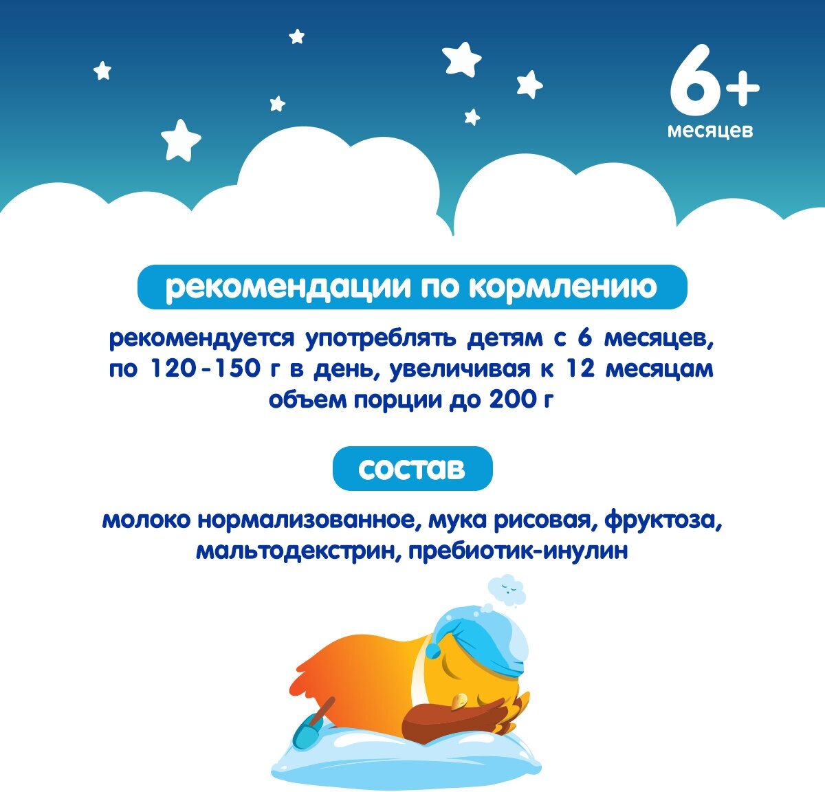 | Состав | молоко нормализованное, мука рисовая, фруктоза, мальтодекстрин, пребиотик - инулин |