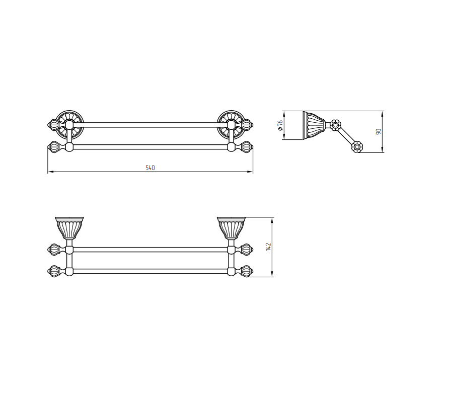 Полотенцедержатель коллекции OLIVIA бренда MIGLIORE - функциональный аксессуар для ванной комнаты. Его длина 50 см подходит для любого полотенца для рук, лица или тела.Изделие выполнено из высококачественной латуни и имеет гальваническое покрытие золотом 24 карата. Внимание: золотое покрытие очень деликатное и для ухода рекомендуется использовать чистящее средство бренда MIGLIORE для смесителей и аксессуаров с деликатными покрытиями бронза, золото, медь и протирать мягкой ветошью.Материал: Латунь+керамикаОснащение: крепления (шурупы)