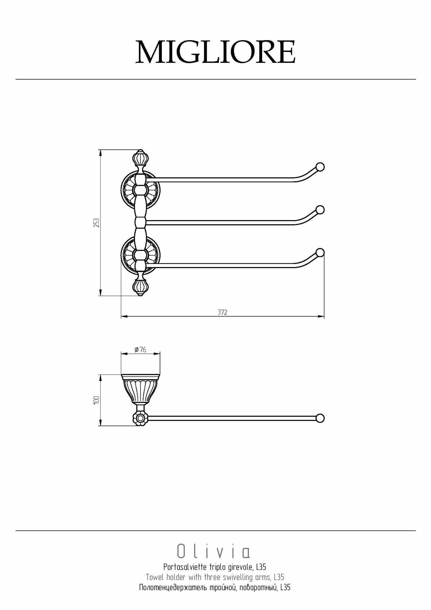 Полотенцедержатель тройной Migliore Olivia ML.OLV-60.654.BP.CR поворотный. Изделие выполнено из латуни и имеет высококачественное хромо-никелевое покрытие, которое при правильном уходе надолго сохранит свой блеск.