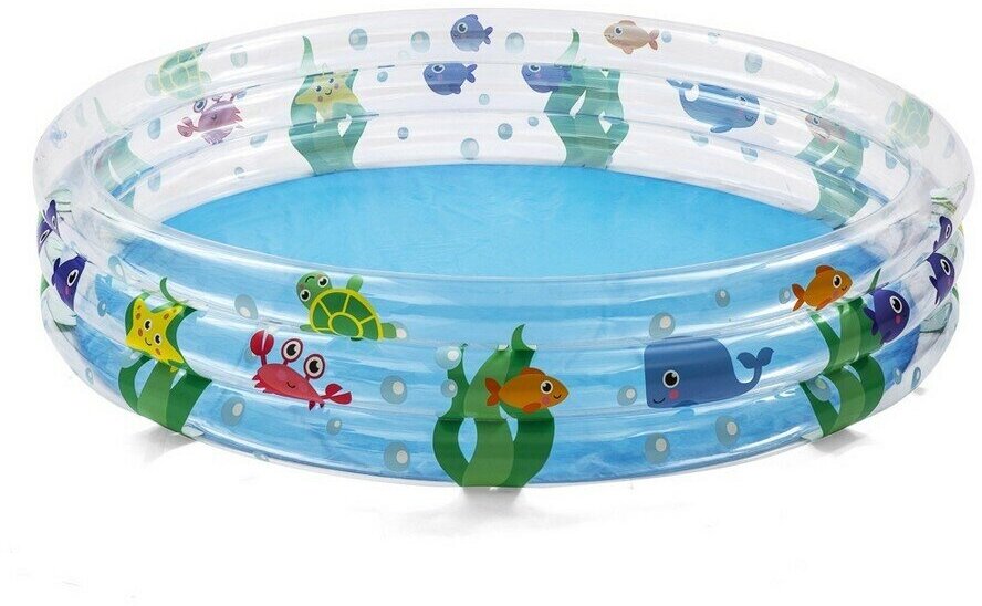 Надувной круглый бассейн Bestway Подводный мир для детей от 2 лет. Изготовлен из высококачественного винила, устойчивый, надежный и безопасный. Имеет мягкие стенки с широкими бортиками и жесткое дно из ПВХ-пленки. Бассейн быстро надувается и устанавливается на любой ровной поверхности.