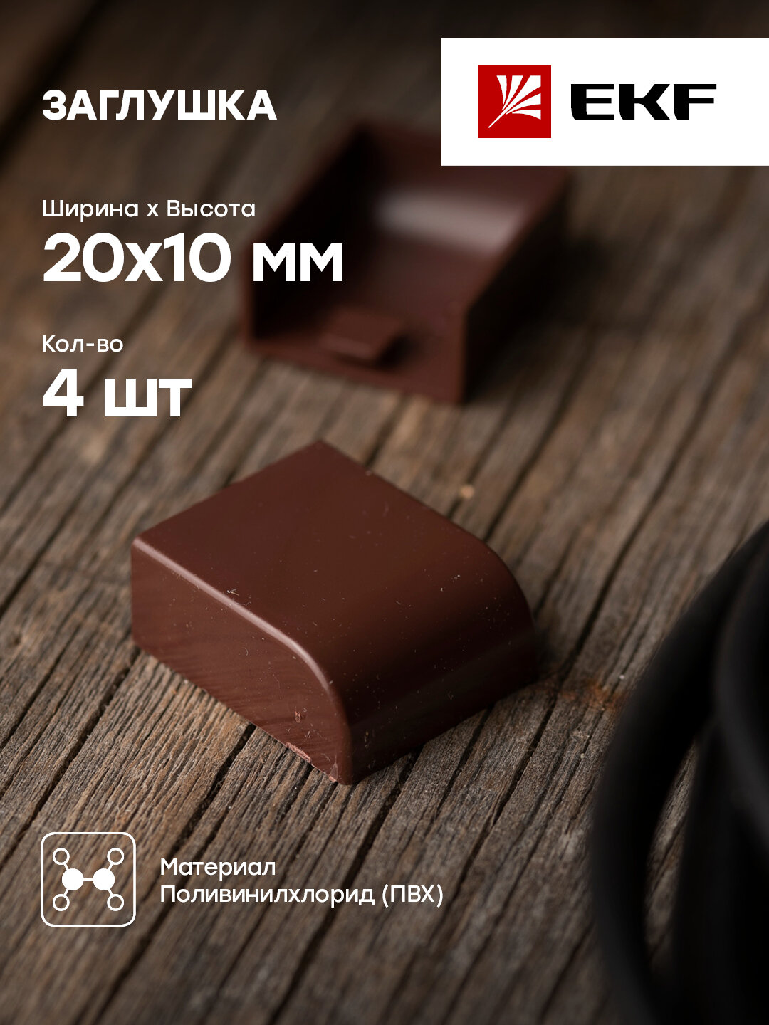Заглушка кабель-канала EKF PROxima 20х10 мм темное дерево 4 шт