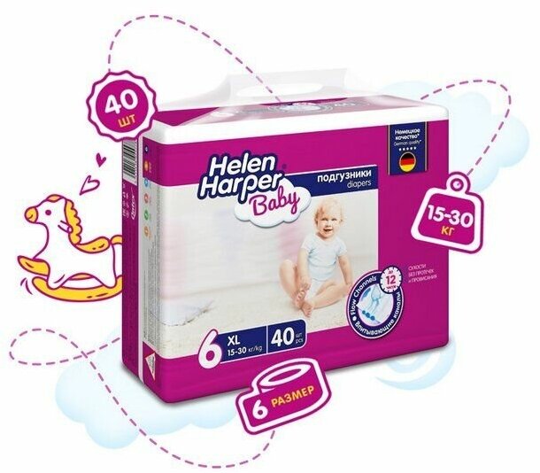 Подгузники Helen Harper Baby XL 15-30кг 40шт. (2315757) (размер: 6/XXL (15+ кг))