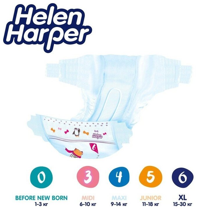 Подгузники Helen Harper baby нового поколения с впитывающими каналами обеспечивают сухость без протечек и провисания. Каналы равномерно распределяют влагу, поэтому она впитывается быстрее и надежно блокируется внутри. Благодаря эластичным боковинкам и двойным резиночкам подгузник отлично прилегает, не стесняя движений ребенка. Дышащий внешний слой обеспечивает постоянный доступ воздуха. Многоразовые липучки гарантируют удобство в использовании. Подгузники не содержат отдушек и дерматологически протестирован