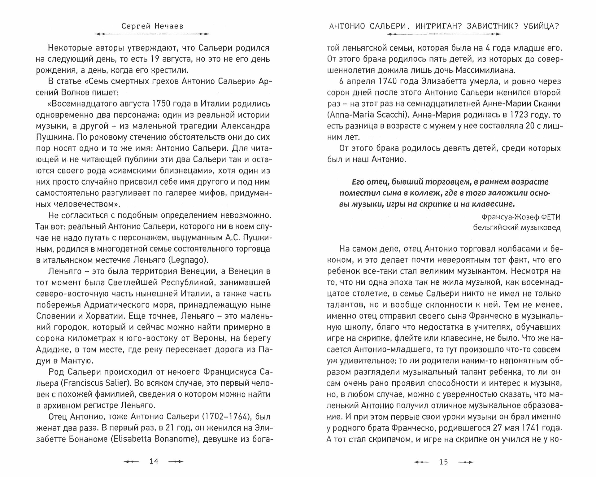 Книга писателя и историка Сергея Нечаева является попыткой исторической реабилитации незаурядного человека и талантливого композитора, который совсем не заслуживает того, чтобы остаться в памяти потомков «отравителем» Моцарта.