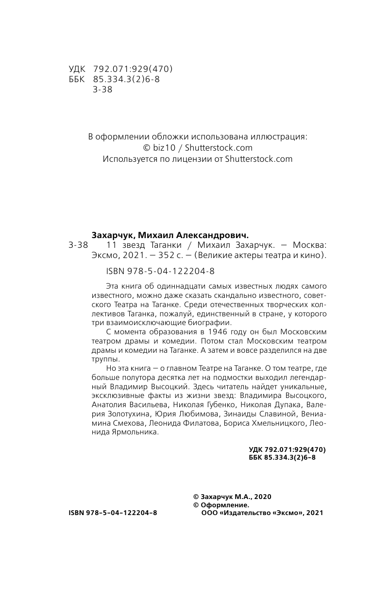 Книга: 11 звезд Таганки (Захарчук Михаил Александрович); ООО "Издательство "Эксмо", 2021