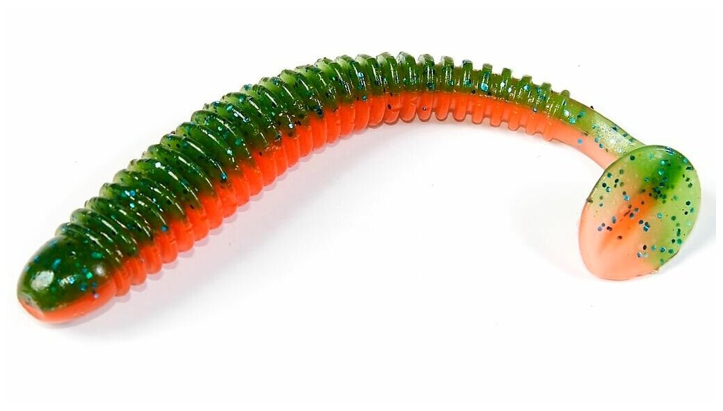 Spark Tail - этот невероятно уловистый виброхвост. Ребристое тело, из мягкого пластика, и тонкая хвостовая пластина позволяют приманке играть на минимальных скоростях проводки, тем самым привлекая внимание хищника, а форма туловища отлично сочетается с любыми монтажами.