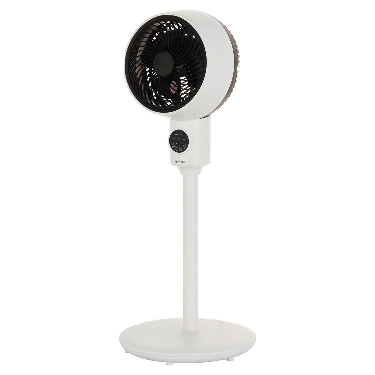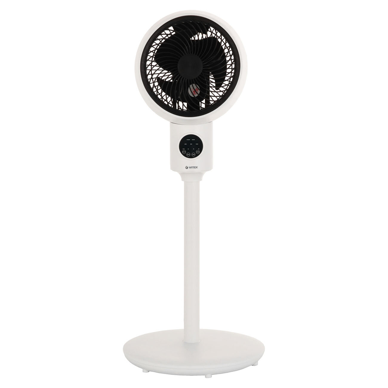 Напольный вентилятор Vitek VT-2074 обращает на себя внимание современным стильным дизайном, благодаря которому станет заметной часть интерьера в стиле лофт, сканди, индастриал. Мощное устройство создаёт воздушный поток скоростью 5,3 куб. м/ч и обеспечивает циркуляцию воздуха в помещении. индивидуальный подход На корпусе расположена сенсорная панель управления, кроме того, настройки можно вводить при помощи дистанционного пульта. Выбирайте скорость работы – всего их три, активируйте функцию горизонтального поворота на 70° для равномерного распределения потоков, устанавливайте таймер. Он программируется на срок от 0,5 до 7,5 часов, а когда заданное время истечёт, прибор выключится автоматически. прочие особенности Высота этой модели 90 см, она закреплена на круглом основании диаметром 33 см. Для вашей безопасности лопасти окружены широким боковым кольцом и защитной решёткой. Корпус и подставка выполнены из качественного износостойкого пластика.