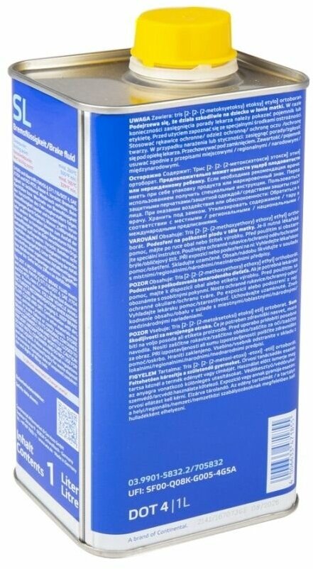 Тормозная жидкость SL DOT 4. Сухая точка кипения: 260°с, но не менее 230°с Влажная точка кипения: 165°с, но не менее 155°с Жидкость меняется с интервалом 1 год.