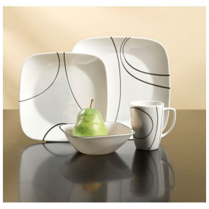 Corelle Тарелка обеденная Simple Lines 26 см Тарелка подчеркнет оригинальность сервировки блюд из птицы, рыбы или овощей. Строгий, не выходящий из моды, минималистичный дизайн в виде изогнутых линий дополняет классический стиль посуды Simple Lines. Преимущество: все элементы сервиза выполнены из высококачественного ударопрочного трехслойного стекла Vitrelle. Изделия прочные и легкие, выдерживают температуру до 180С, могут использоваться в посудомоечной машине и микроволновой печи. Защита от царапин и сколов. Посуда Corelle не впитывает запахов и очень долгое время выглядит как новая. В производстве используются только безопасные для пищи пигменты и не применяется вредный для здоровья человека меламин. Изделия Corelle прочные и легкие, выдерживают температуру до 180°C, могут использоваться в посудомоечной машине и микроволновой печи. Необычный рисунок посуды серии Simple Lines привлечет внимание, удовлетворит самый изысканный вкус и возможность сервировать стол для ужина или праздничных трапез.
