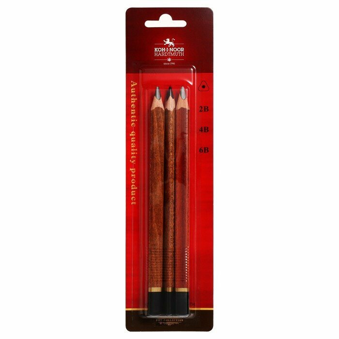 Упаковка карандашей чернографитовых KOH-I-NOOR Triograph 1833 2B-6B трехгранный дерево 2мм блистер 24 шт./кор. 1833003001BL