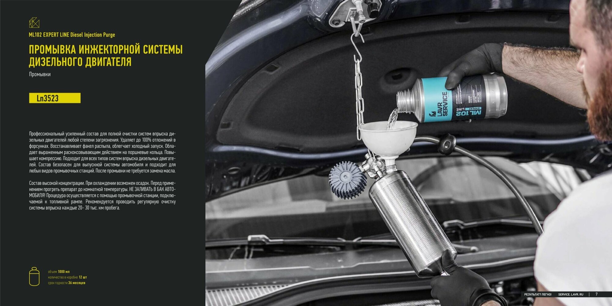 Промывка инжекторной системы дизельного двигателя LAVR SERVICE ML102 EXPERT LINE, 1000 мл может применяться со всеми типами промывочных станций, для очистки любых видов систем впрыска дизельных моторов. Продукт представляет собой состав высокой концентрации с усиленным действием.