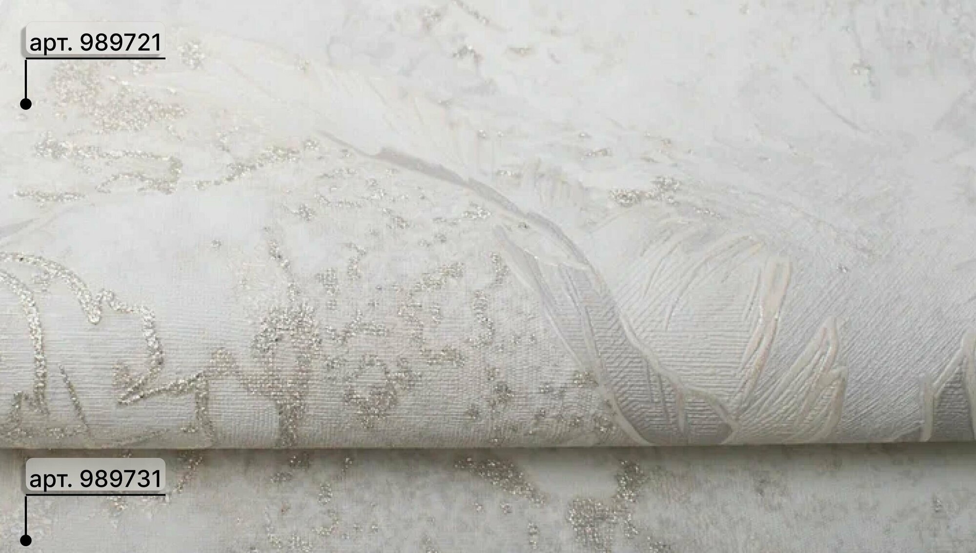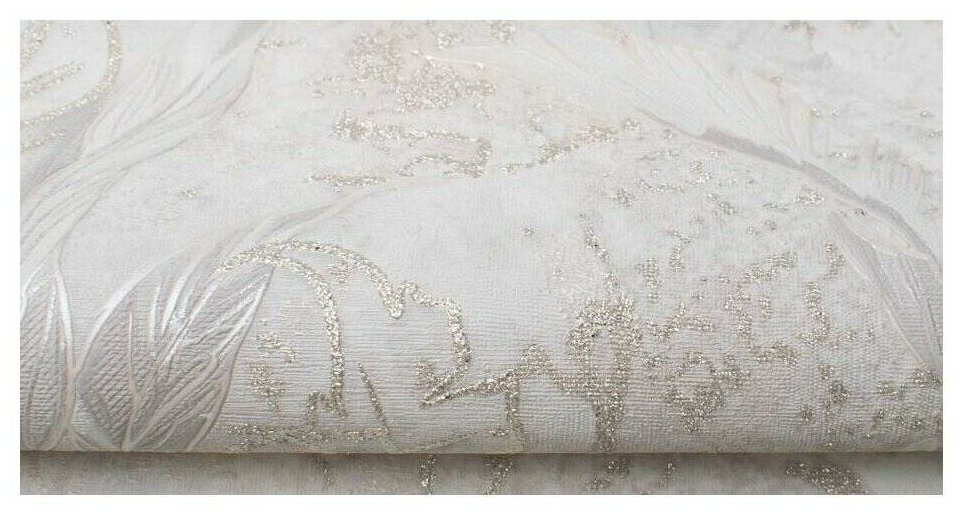 Материал имеет двухслойную структуру: поверхность из компакт-винила и основание из флизелина. Богатый декор подчеркивает эффект сияния, который создается за счет использования на отдельных элементах крупных металлизированных частиц в различных оттенках.