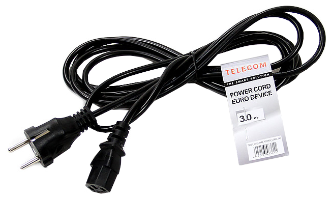Кабель Telecom CEE 7/7 (Schuko) - IEC С13 (TE021-CU0.5) 3 м черный TE021-CU0.5-3M