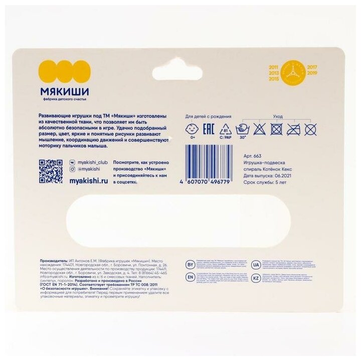 Сервис сравнения цен СкидкаГИД предлагает сравнить цены на товар «Мякиши Игрушка-подвеска спираль Котенок Кекс»