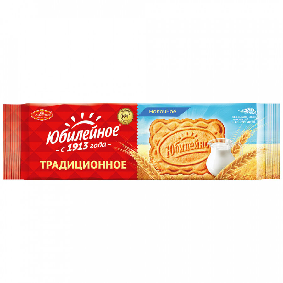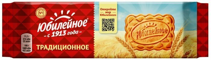 Юбилейное - печенье на все поколения! "Юбилейное" - печенье №1 в России, выпускаемое с 1913 года. На сегодняшний день ассортимент "Юбилейного" очень разнообразен и отвечает требованиям даже самых взыскательных потребителей: традиционное, с глазурью, с кусочками ягод, с овсяными хлопьями и даже постное, рецепт которого не содержит яиц и молока. Потребители доверяют бренду "Юбилейное" за неизменно высокое качество и выбирают за вкус, который знаком всем с детства.