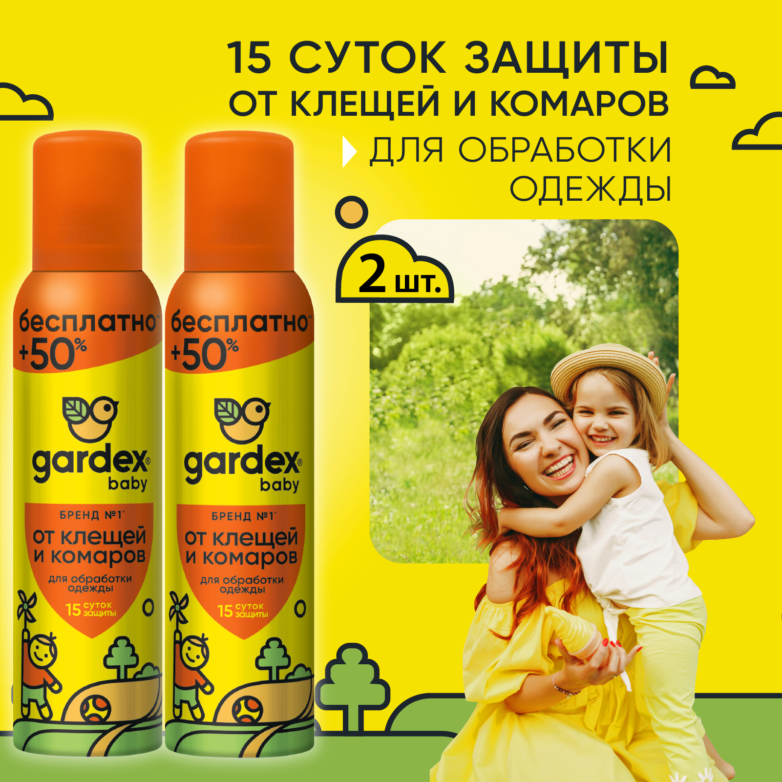 Эффективная защита от клещей на одежде в течение 15 дней, от комаров – 10 дней.