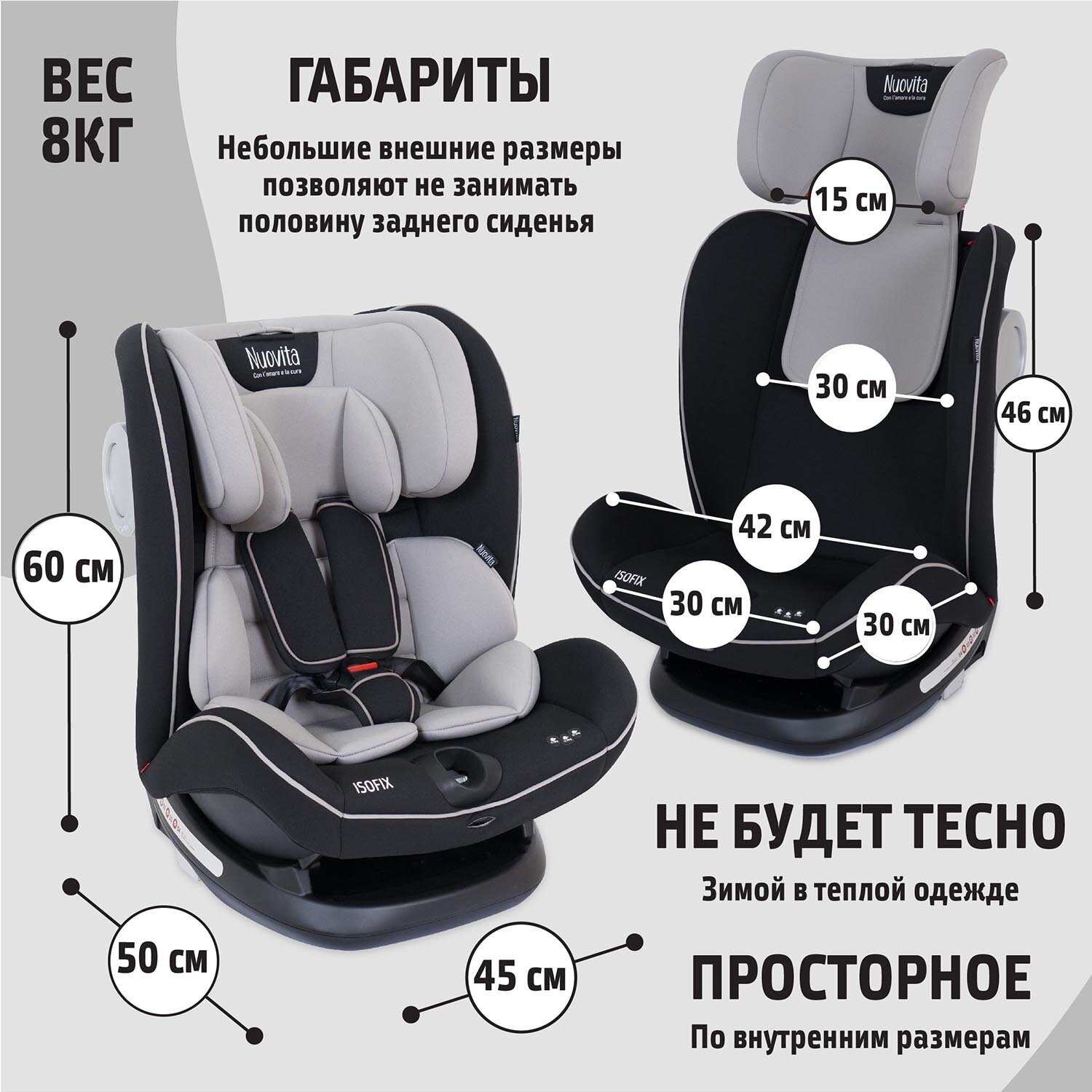 Детское автокресло Nuovita Maczione N123i-2 рассчитано на детей в возрасте с 9 месяцев до 12 лет (вес от 9 до 36 кг) и соответствует европейскому стандарту безопасности ECE R44/04. Это модель универсального типа, которая охватывает 1/2/3 возрастные группы. Устройство предлагает высокий уровень безопасности и комфорта: обеспечивает защиту при боковом ударе, для длительных поездок снабжено регулировкой сиденья, учитывающей физиологию ребенка. Изготовлено из высококачественных материалов и подходит для большинства автомобильных сидений. Безопасность:Европейский стандарт безопасности ECE R44/04 — индивидуальный номер испытаний E8*44R04/17*10276*06.В конструкции реализована технология «BEEHIVE PROTECTION», которая выполняет защиту при боковых столкновениях за счет пластикового корпуса, заполненного материалом, поглощающим энергию удара.Безопасность головы и шеи обеспечивается благодаря эргономичному подголовнику, высота которого регулируется в 9 положениях.Крепление Top Tether (якорный ремень) снижает нагрузку на шейные позвонки при фронтальном ударе. Плечевые ремни снабжены нескользящими силиконовыми накладками, стабильно удерживающими ребенка в случае аварийной ситуации.Автокресло устанавливается по ходу движения автомобиля. Возможна фиксация двумя способами: на скобы ISOFIX и якорный ремень или на штатные 3-х точечные ремни автомобиля.На корпусе устройства имеются указания по правильной установке.Комфорт:Это детское автокресло+ рассчитано на вес до 36 кг, оно трансформируется с учетом размеров и потребностей малыша. Наклон регулируется в 4-х положениях — если малыш заснет, сиденье можно выдвинуть вперед, тело перейдет в наклонное положение, и голова ребенка будет по-прежнему защищена. Ручка регулировки находится спереди.Высота подголовника меняется в зависимости от роста. Имеется мягкий вкладыш с 5-точечными ремнями безопасности и плечевыми накладками (рекомендуется до 4-х летнего возраста).Детское автокресло изготовлено из прочных высококачественных материалов, обеспечивающих использование на протяжении длительного времени. Используется мягкий и эластичный материал, который позволяет избежать ломкости при нештатных ситуациях. Его влаговпитывающее свойство позволяет создать естественную вентиляцию, благодаря которой малышу будет уютно и комфортно при длительных поездках. Съемный чехол можно стирать в режиме ручной стирки, что легко позволяет поддерживать кресло в чистом состоянии.