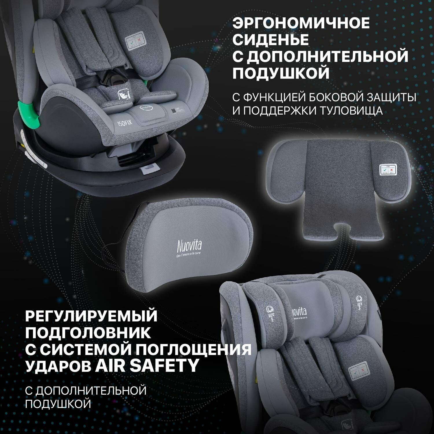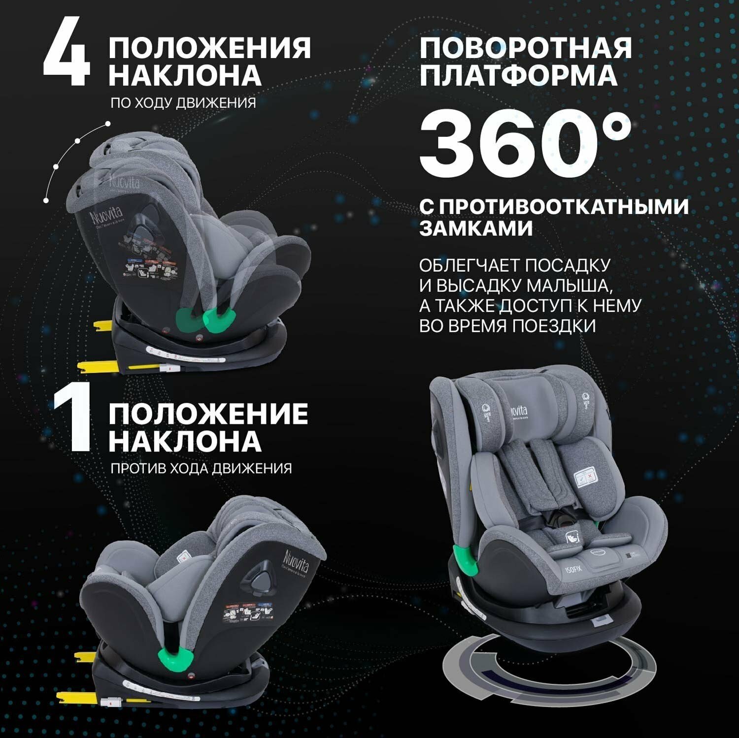 Детское автокресло Nuovita Maczione NiS2-1 предназначено для детей с рождения до 12 лет (рост 40-135 см, группа 0+/1/2/3). Это усовершенствованное детское удерживающее устройство, которое обеспечит ребенку максимальную защиту, поскольку изготовлено в соответствии с европейским стандартом I-Size. Эффективный поворотный механизм, широкие возможности регулировки подголовника и наклона сиденья — залог того, что поездка будет сопровождаться высоким уровнем комфорта. Подходит для автомобилей с ISOFIX.