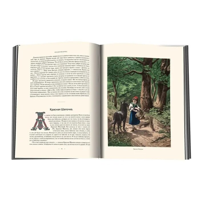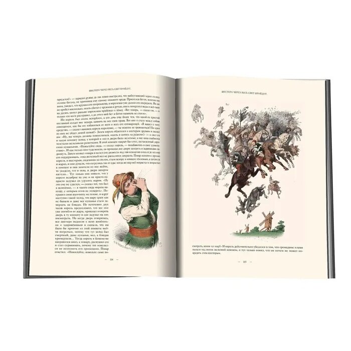 Потрясающее издание, самый полный сборник сказок и легенд братьев Гримм в редакции Полевого. 183 прекрасных иллюстраций Грот-Иоганна и Лейнвебера. Рисунки не на каждом развороте, но всё равно их много, исполнение гравюр в цвете считаю удачным решением, современного читателя завлекут. Страницы плотные, мелованные, тонировка с розовинкой. Обложка кашированная с использованием красной, золотой и чёрной фольги. Очень долго искала свой идеальный сборник сказок братьев Гримм и нашла его в этом исполнении. Книга очень красивая, читать одно удовольствие.