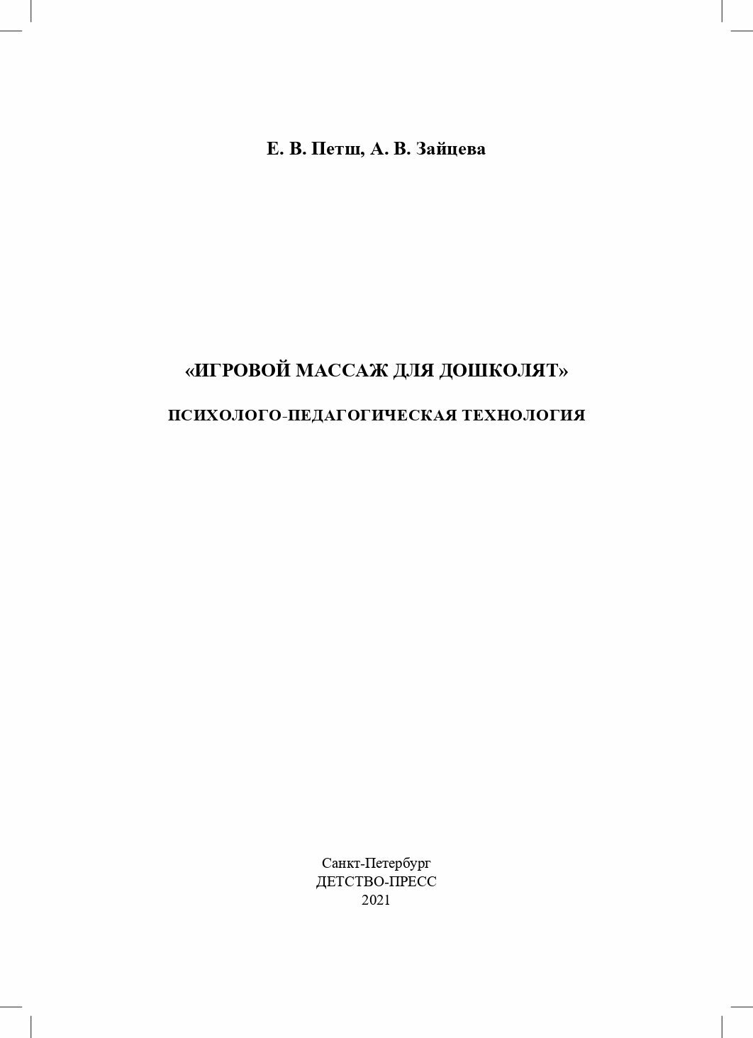 Игровой массаж для дошколят. Психолого-педагогическая технология. 5-7 лет. (Петш Елена Викторовна; Зайцева Анна Владимировна); Детство-Пресс, 2021