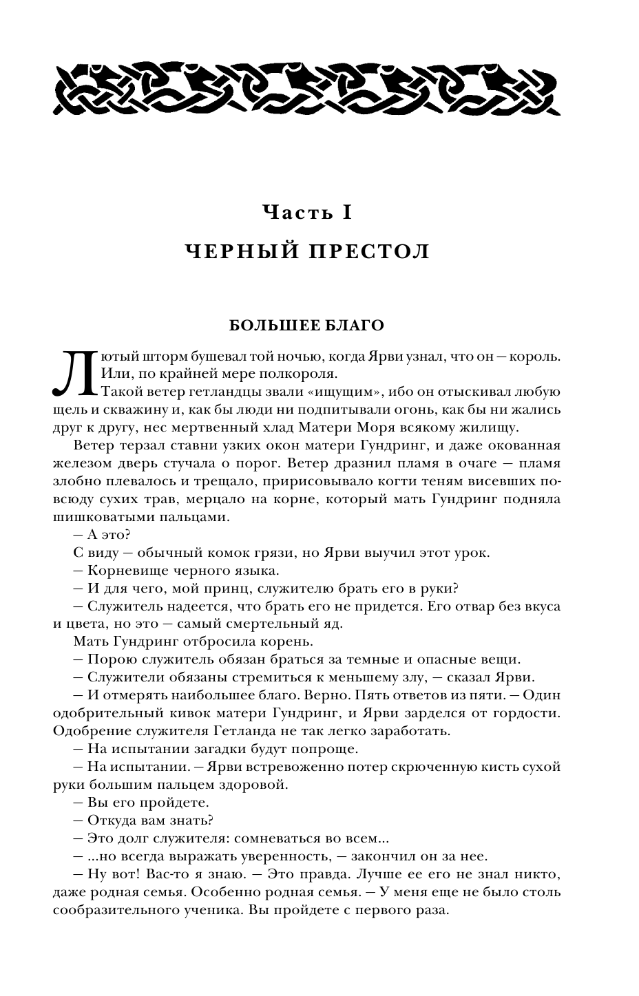 Не слушайте тех, кто отзывается о книге как о "подростковом фэнтези". Долгое время не покупал под влиянием этого стереотипа. Прочитал с удовольствием. Есть сюжет, есть интрига и есть местный прообраз " северян" из Первого закона. А "северяне", во всех ипостасях - это то, ради чего стоит читать Аберкромби.