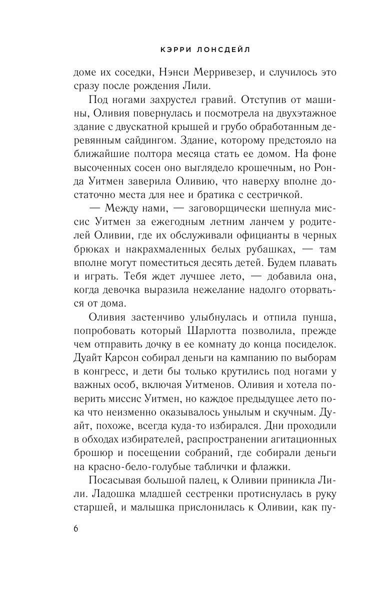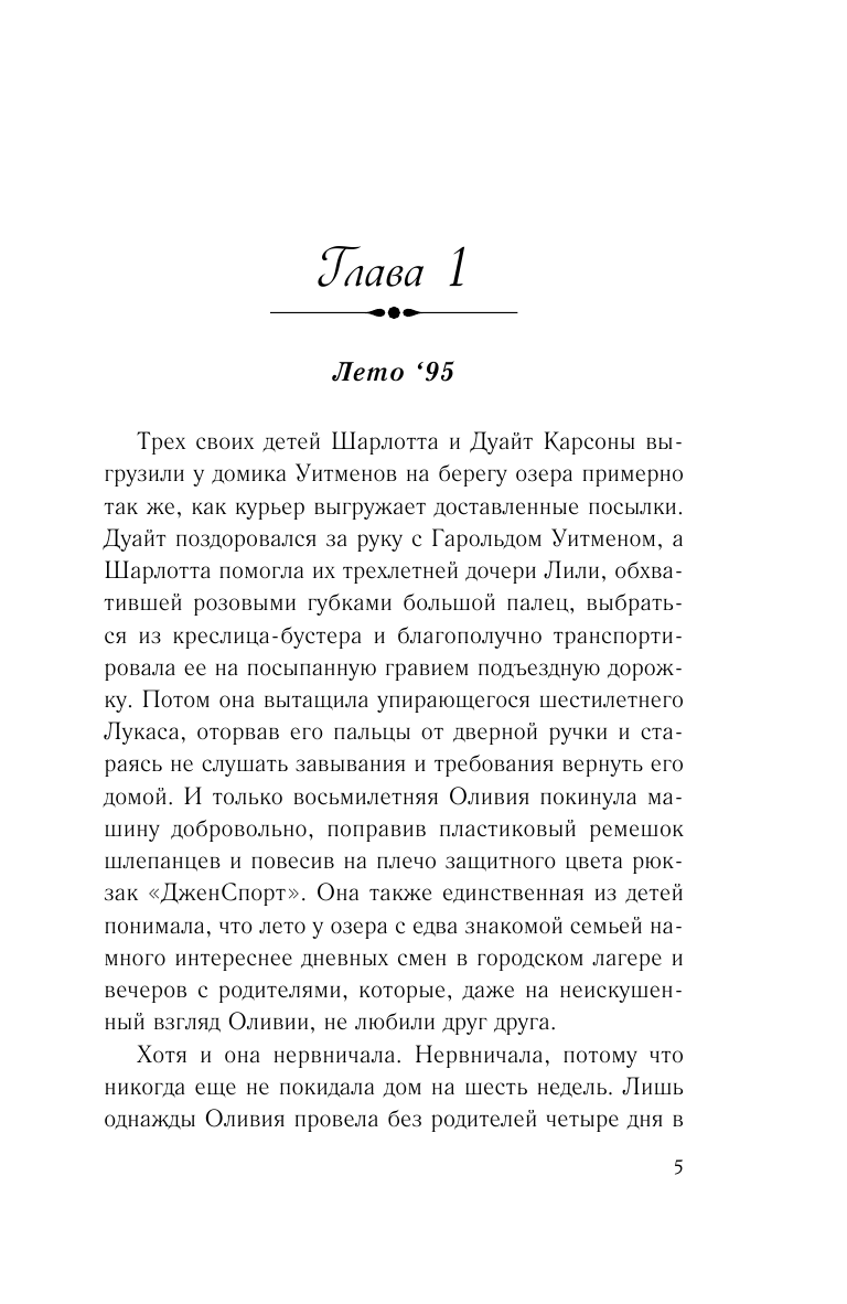 Более десяти лет спустя Оливия, любимая дочь Карсонов, встречает странного, плохо разговаривающего подростка Джоша, который оказывается сыном ее младшей сестры Лили. Из-за давней ссоры Оливия и Лили не общаются, но теперь Оливию придется отыскать сестры, а заодно разобраться с давними семейными тайнами, что годами отравляли ее жизнь.