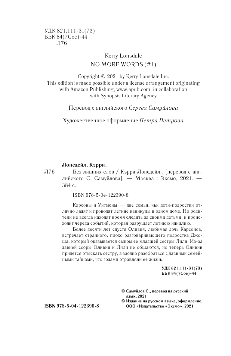 Книга: Без лишних слов (Кэрри Лонсдейл); Эксмо, Редакция 1, 2021