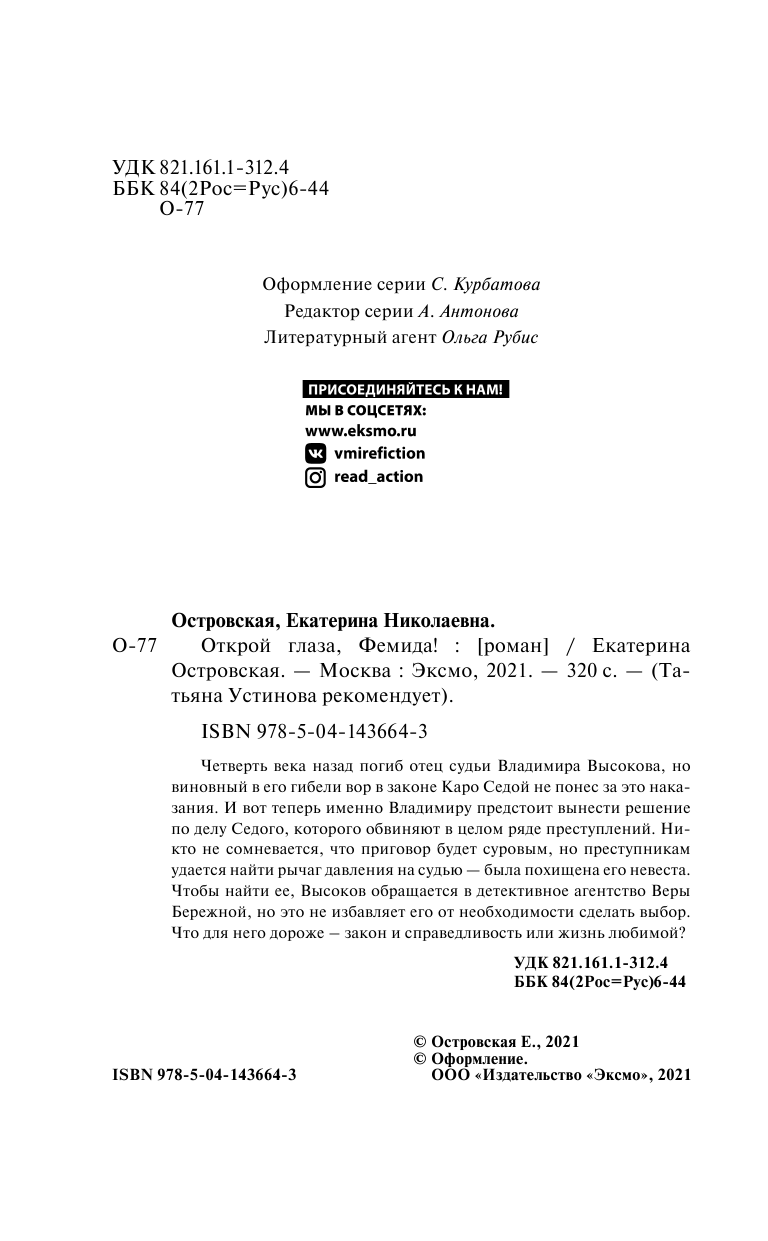 Книга: Открой глаза Фемида! (Островская Екатерина Николаевна); ООО "Издательство "Эксмо", 2021