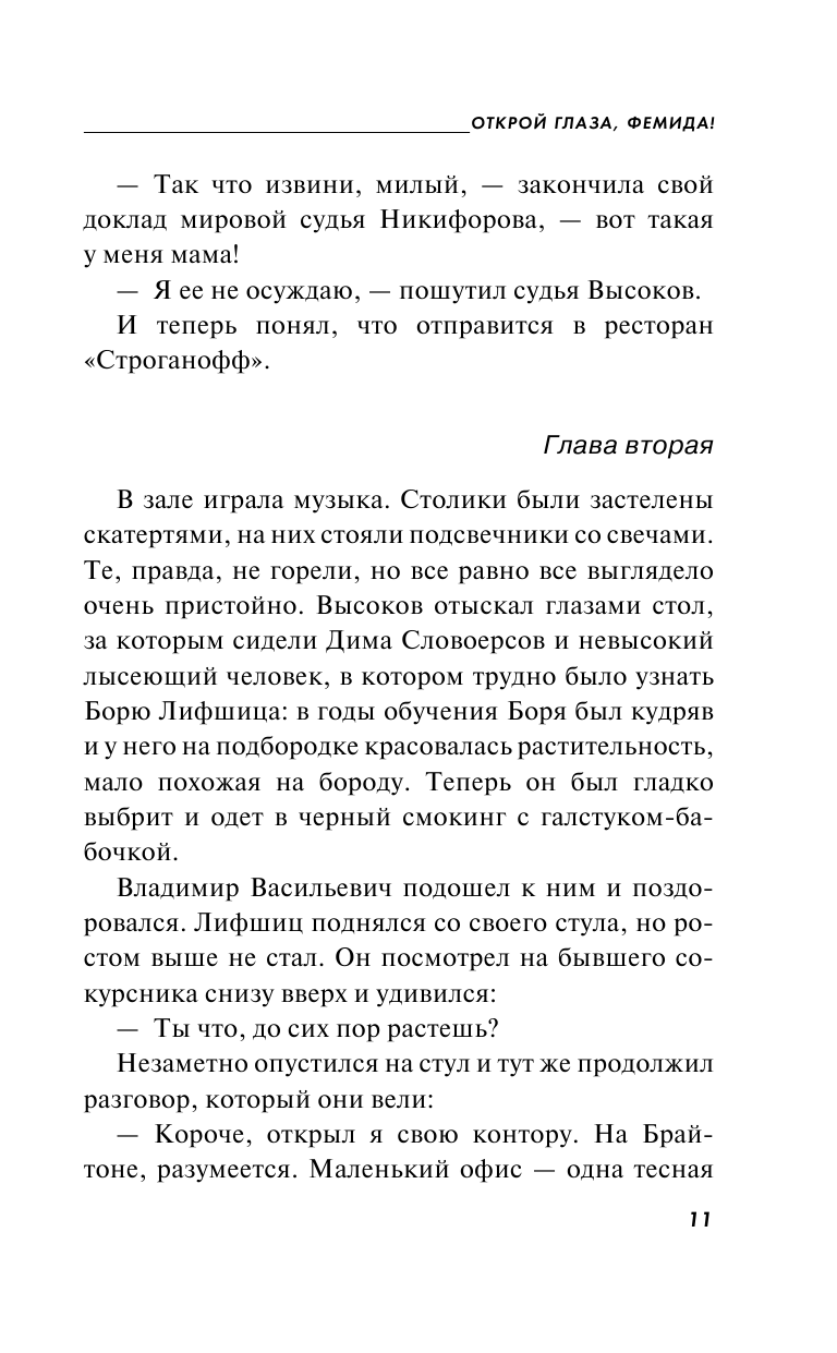 А для меня книга стала разочарованием: никакой российской действительностью там даже и не пахнет, так, отголоски... Неужели теперь в качестве положительного героя - ГГ представляется как положительный- будет преступник, этакий Робин Гуд судейского розлива? Причем преступлений он совершил несколько, и скрывая якобы преступницу, улики, и верша правосудие своими руками. Такого в реалиях быть не может - кандидаты в судьи проходят тщательный отбор, в том числе и по здоровью, психическому тоже. Да и сам сюжет, хоть и закручен, но страдает наивностью: ведь не может 35-летний мужик да еще судья так повестись на подставу, да раздавать визитки неизвестно кому, да обещать помочь (а это сделано, и как бы не было тут использования служебного положения). Впрочем, как фэнтези книга и сойдет...