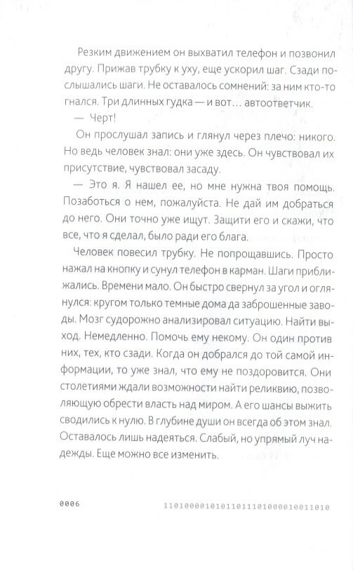 Тут всё как в компьютерной игре: ловушки, головоломки, погони. Только вот дополнительной жизни не будет. Четырнадцатилетний хакер Эван Картье не должен проиграть! Штаб секретных спецслужб в катакомбах Парижа - его новый учебный класс, тайная флешка с загадочным шифром - задание на дом. Вместо простых задачек вроде просьбы одноклассницы стереть компромат перед Эваном теперь проблема: он вовлечен в поиск реликвии с предполагаемой магической силой.